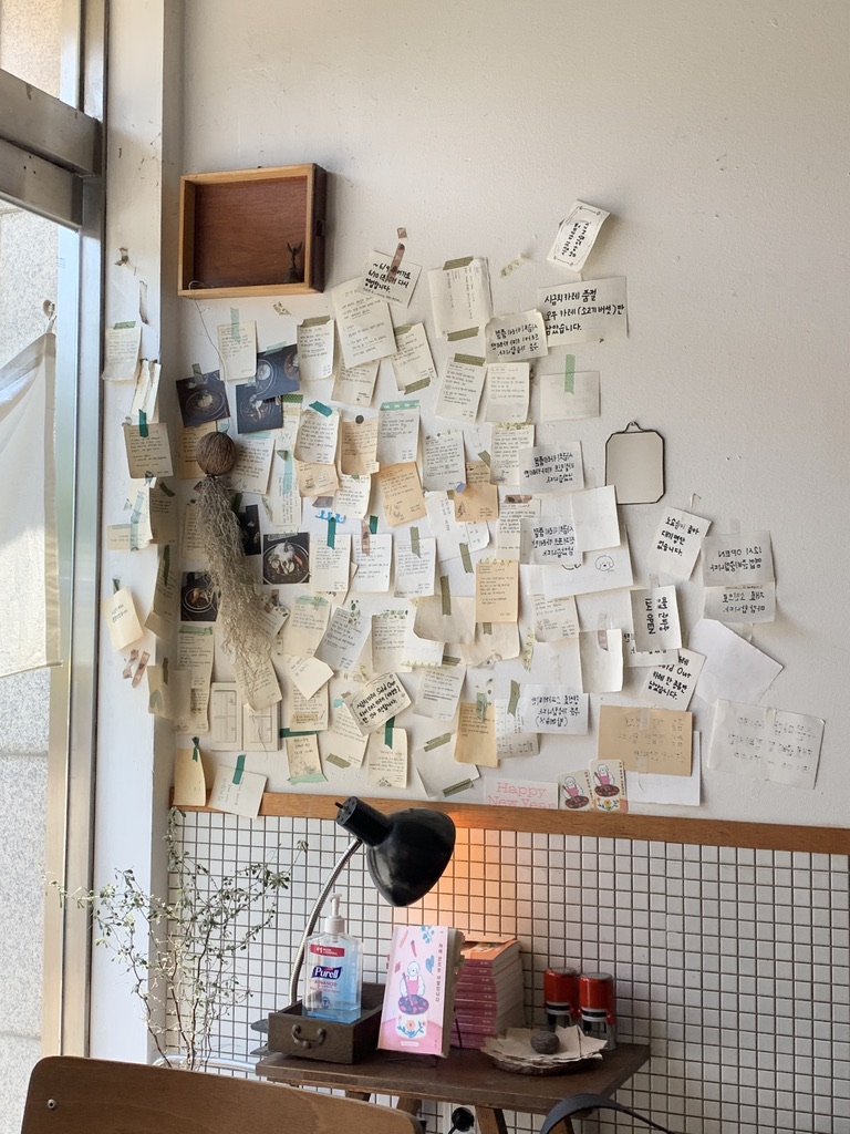 메뉴를 시키고는 화장실을 갈 겸 내부를 좀 더 둘러봤다. 근데 사장님이 책을 내신 건지? 귀여운 포스터가 곳곳에 걸려있었다. 그리고 카이 어쩌고.. 뭐 그런 게 적혀있었는데 정확히 뭘 의미하는 진 모르겠다. 그냥 포스터 색깔 이쁘고 귀엽다.